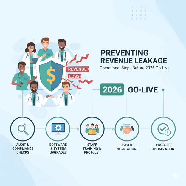 To avoid revenue leakage, clinics and practices should implement these operational steps before the 2026 go-live date: